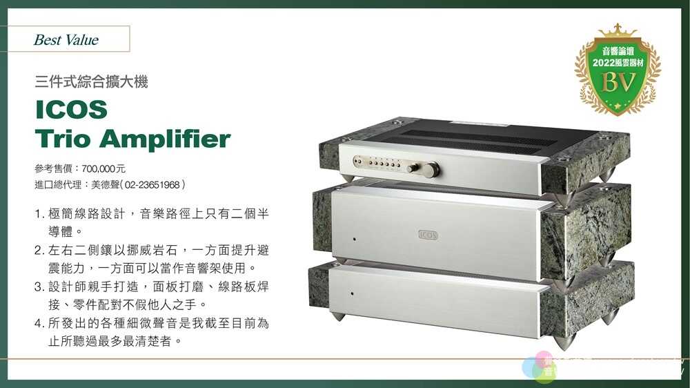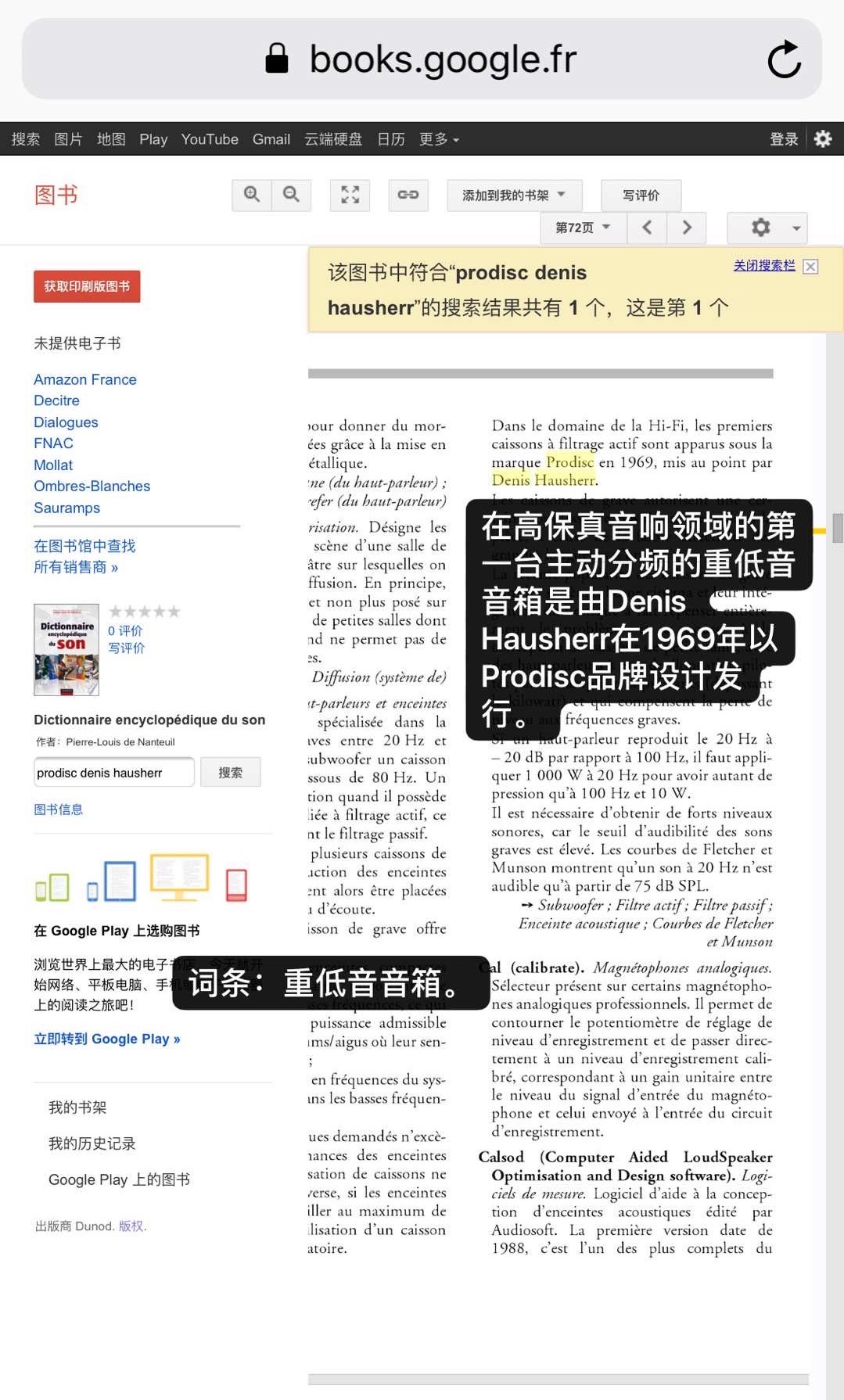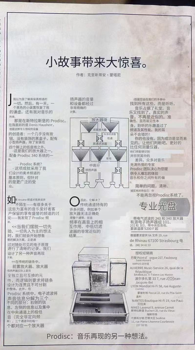 “在高保真领域,1969年,(ICOS的创始人)Denis Hausherr以Prodisc唱片录音室品牌设计并制造推出首只主动式重低音音箱。“