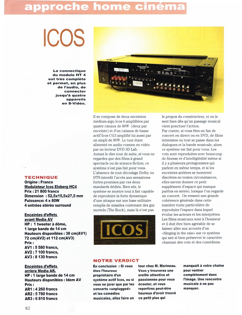 “我认识许多ICOS系統的用家,他们都对ICOS系统非常滿意,只有欣喜。 这个俱乐部包括一些伟大的音乐家,一位顶尖的法国米其林三星主厨,一个博学多才的(红衣主教)神父,这些都是ICOS相当不错的名片。”